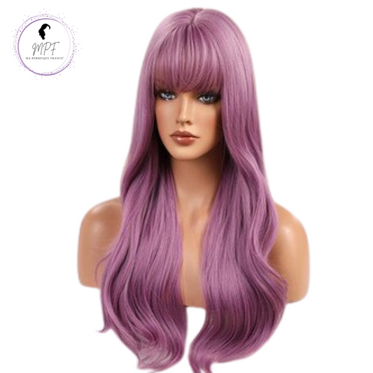 Perruque bob cheveux synthétiques longue/ondulée - Couleur Violette