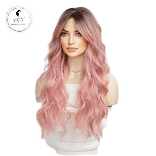 Perruque bob cheveux synthétiques longue/ondulée - Couleur Rose