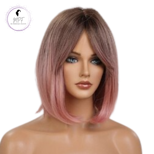Perruque bob cheveux synthétiques courte/lisse - Couleur rose