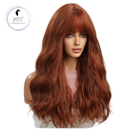 Perruque bob cheveux synthétiques longue/ondulée - Rousse