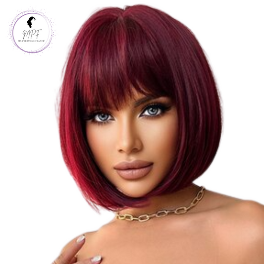 Perruque bob cheveux synthétiques Court/lisse- Couleur bordeaux