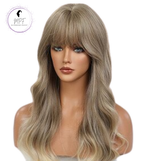Perruque bob cheveux synthétiques longue/ondulée - Blonde/ gris