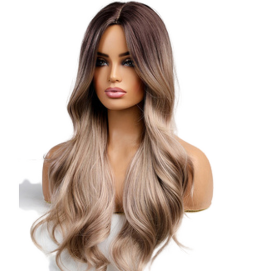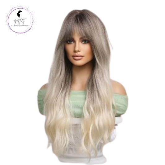 Perruque bob cheveux synthétiques longue/ondulée - Blonde ombrée