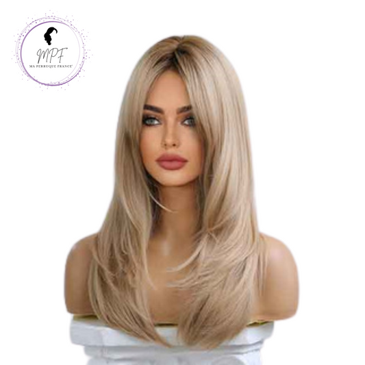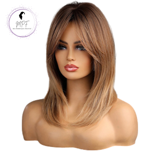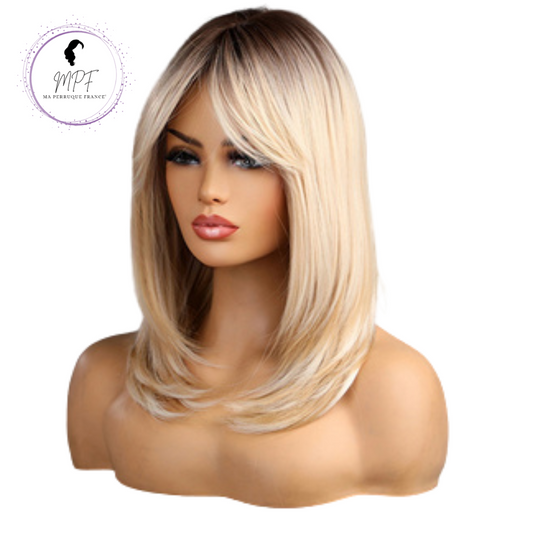 Perruque cheveux synthétiques mi-long/lisse - Blonde foncée - Dégradée
