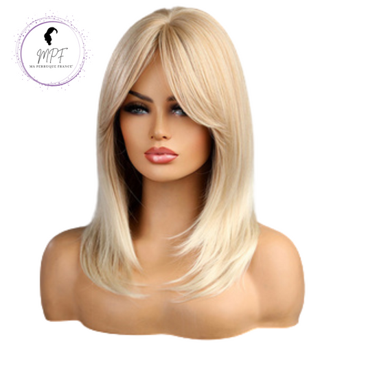 Perruque bob cheveux synthétiques mi-long/lisse - Blonde